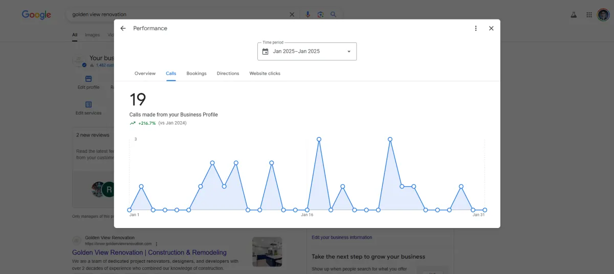 Bigger projects booked (general remodels and additions, not bathrooms and tile repairs).